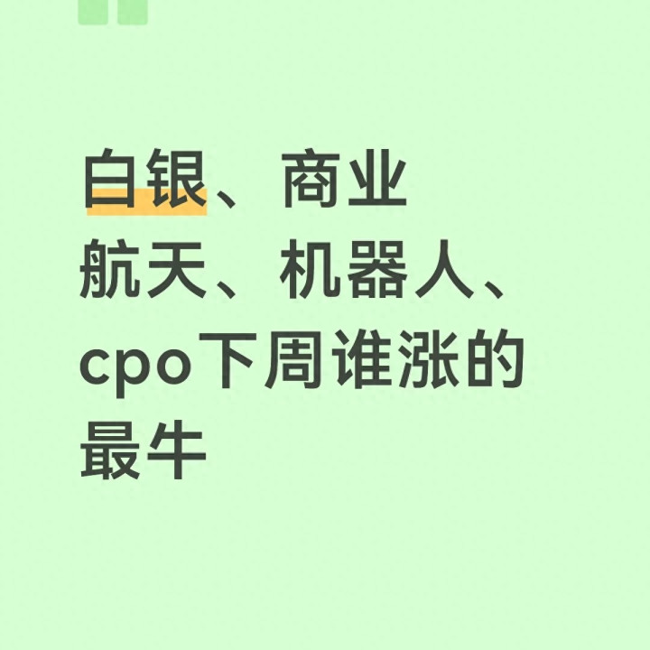 说到底,四个板块里CPO有AI算力刚需和订单落地的双重基本面支撑,资金布局也最充分,下周最可能成为“涨得最牛”的板块;机器人会呈现分化反弹,商业航天是短线情绪冲高,白银则是小幅波动。当然,股市涨跌还会受大盘环境、突发消息影响,但从核心逻辑来看,CPO的上涨确定性和力度都是最高的。